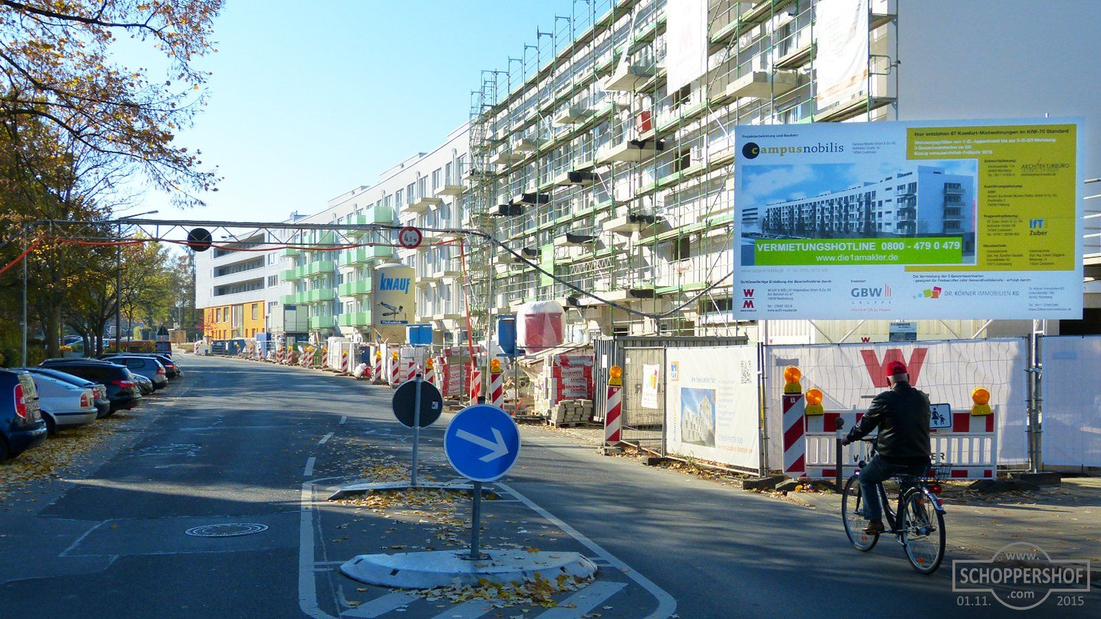 Die Baumaßnahmen in der Elbinger Straße neigen sich dem Ende. Während noch vor genau einem Jahr - wir berichteten darüber - auf dem Areal des ehemaligen Straßenbahn-Betriebshofs Nordost die ersten Bohrungen stattfanden, ist innerhalb von zwölf Monaten ein stattliches Wohn- und Geschäftsgebäude entstanden.