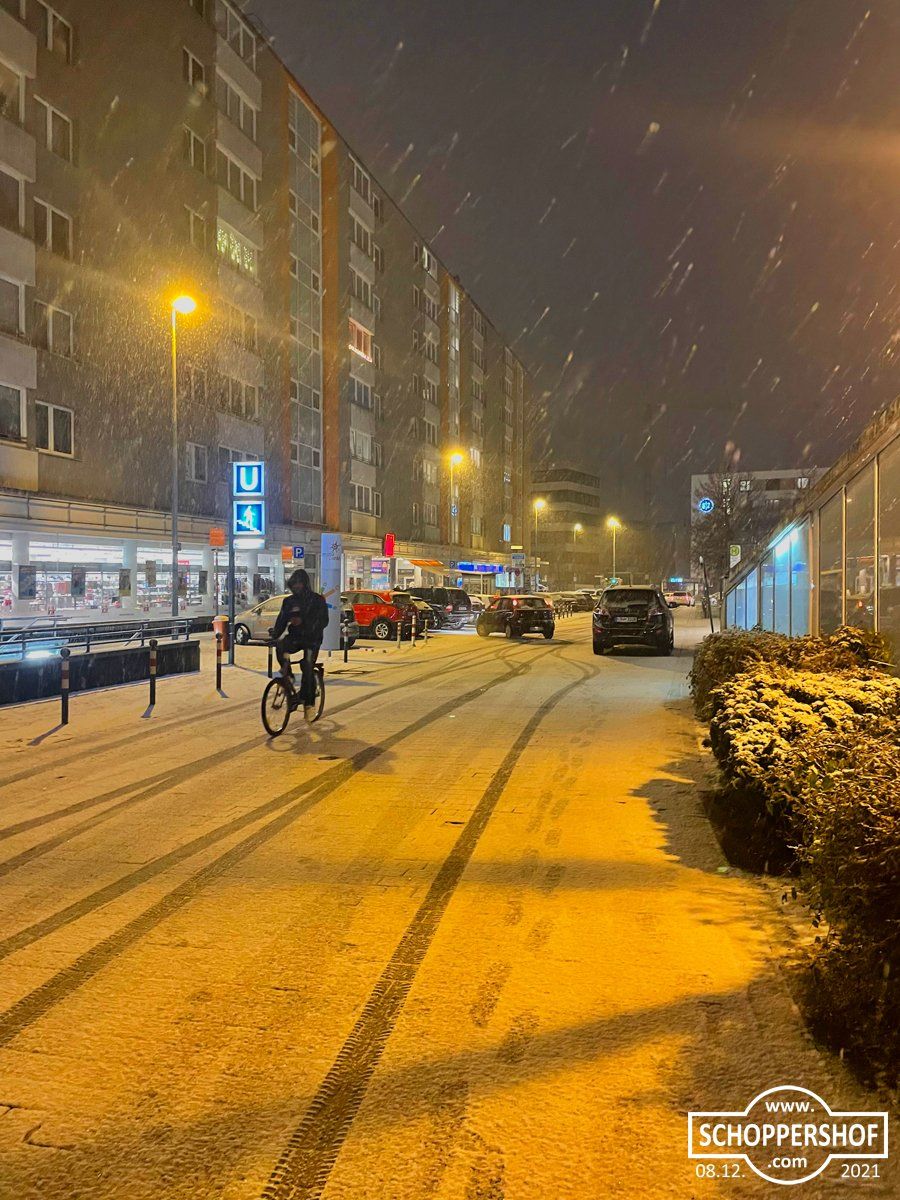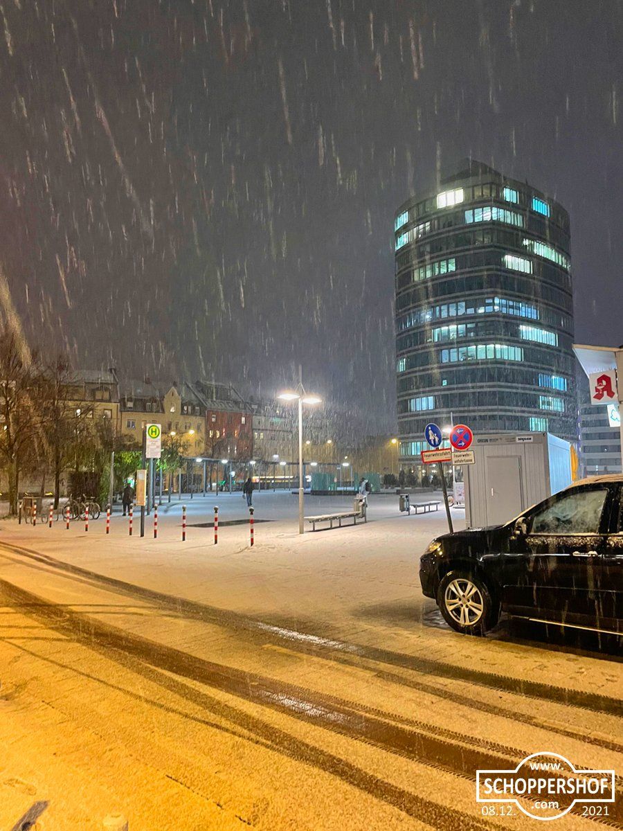 Am Nachmittag des 08. Dezember fielen in Nürnberg Schoppershof knapp fünf Zentimeter Neuschnee und der Leipziger Platz verwandelte sich in eine wunderschöne Winterkulisse.
