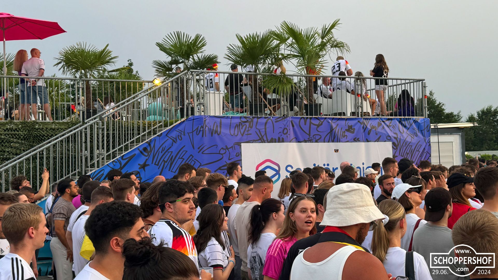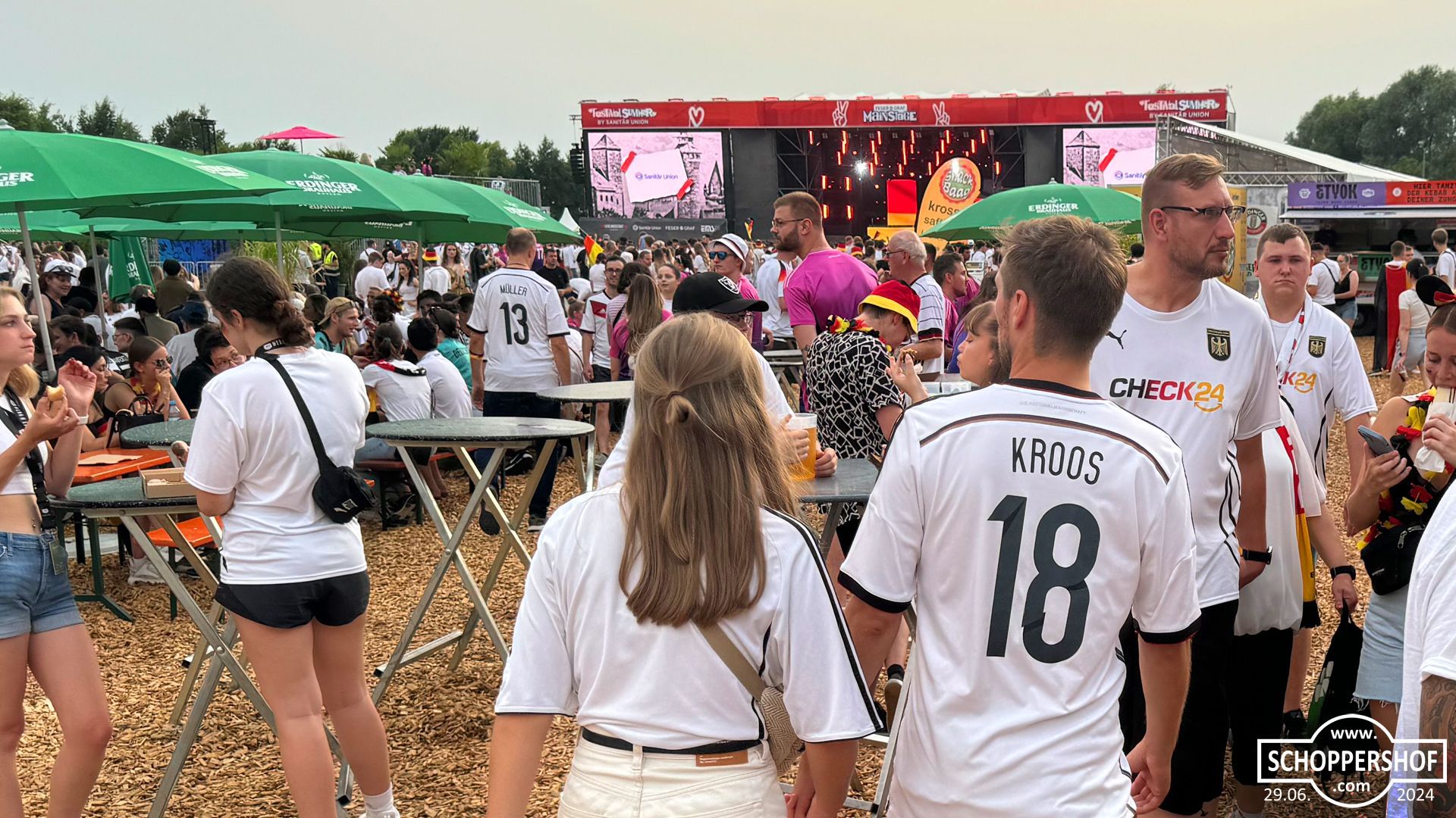 2:0 gewann die deutsche Elf in einem Blitz- und Donner-Krimi im Achtelfinale gegen eine starke dänische Mannschaft. Wir waren am Airport Nürnberg beim Public Viewing voll dabei und hatten einen genialen Abend mit großer Begeisterung und bei heißen Temperaturen.