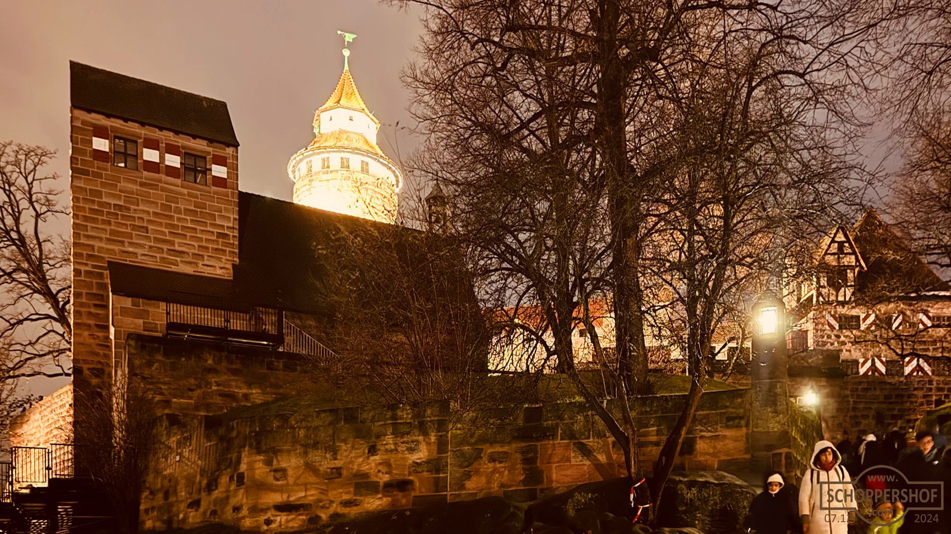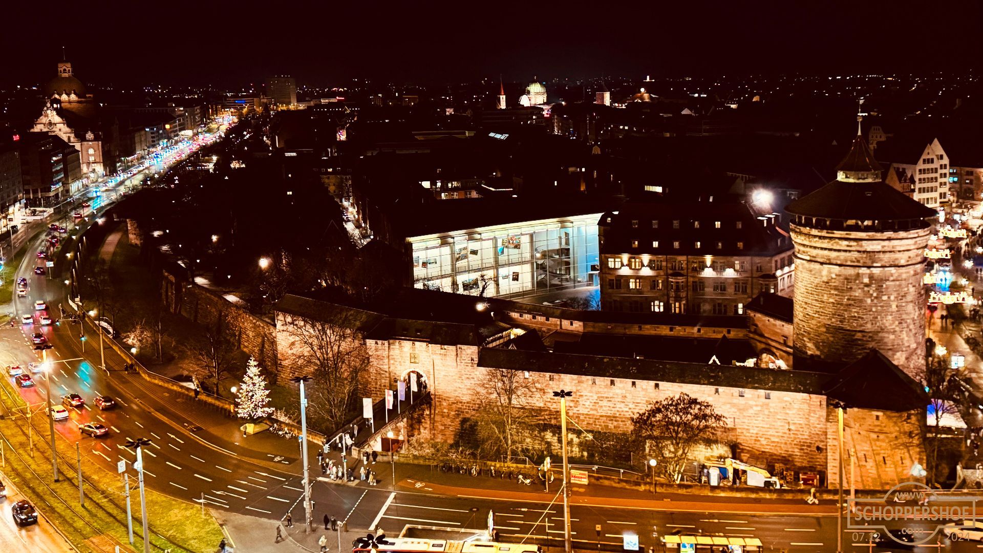 Nächtlicher Blick über die Dächer der Nürnberger Altstadt. Unser Spaziergang führte uns zur Kaiserburg Nürnberg, von der wir einen wunderschönen Blick Richtung Süden hatten.