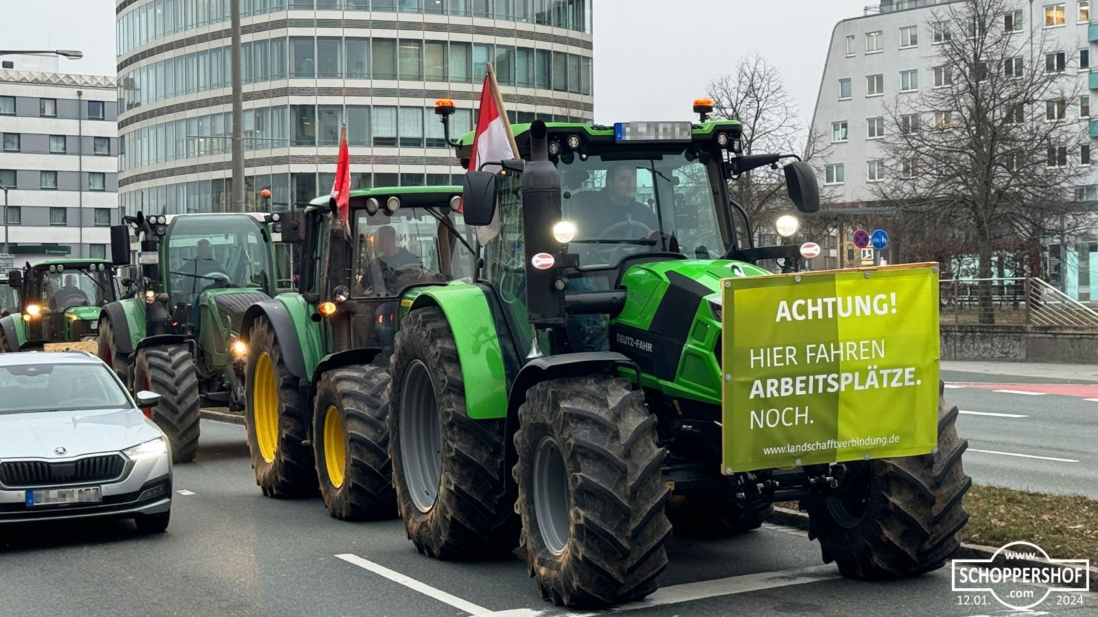 Am Freitag dem 12.01.2024 brachten zahlreiche Landwirte erneut ihren Unmut über die Sparpläne und die Politik der Bundesregierung auf die Straßen. Die Bauern fuhren, wie hier auf der Äußeren Bayreuther Straße in einer Sternfahrt mit Traktoren in die Frankenmetropole.