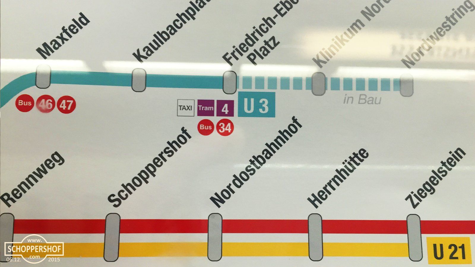Im Stadtteil Schoppershof befinden sich zwei U-Bahn-Stationen der U2. Die Station »Schoppershof« wurde am 22.05.1993 und die Station »Nordostbahnhof« drei Jahre später am 27.01.1996 eröffnet.