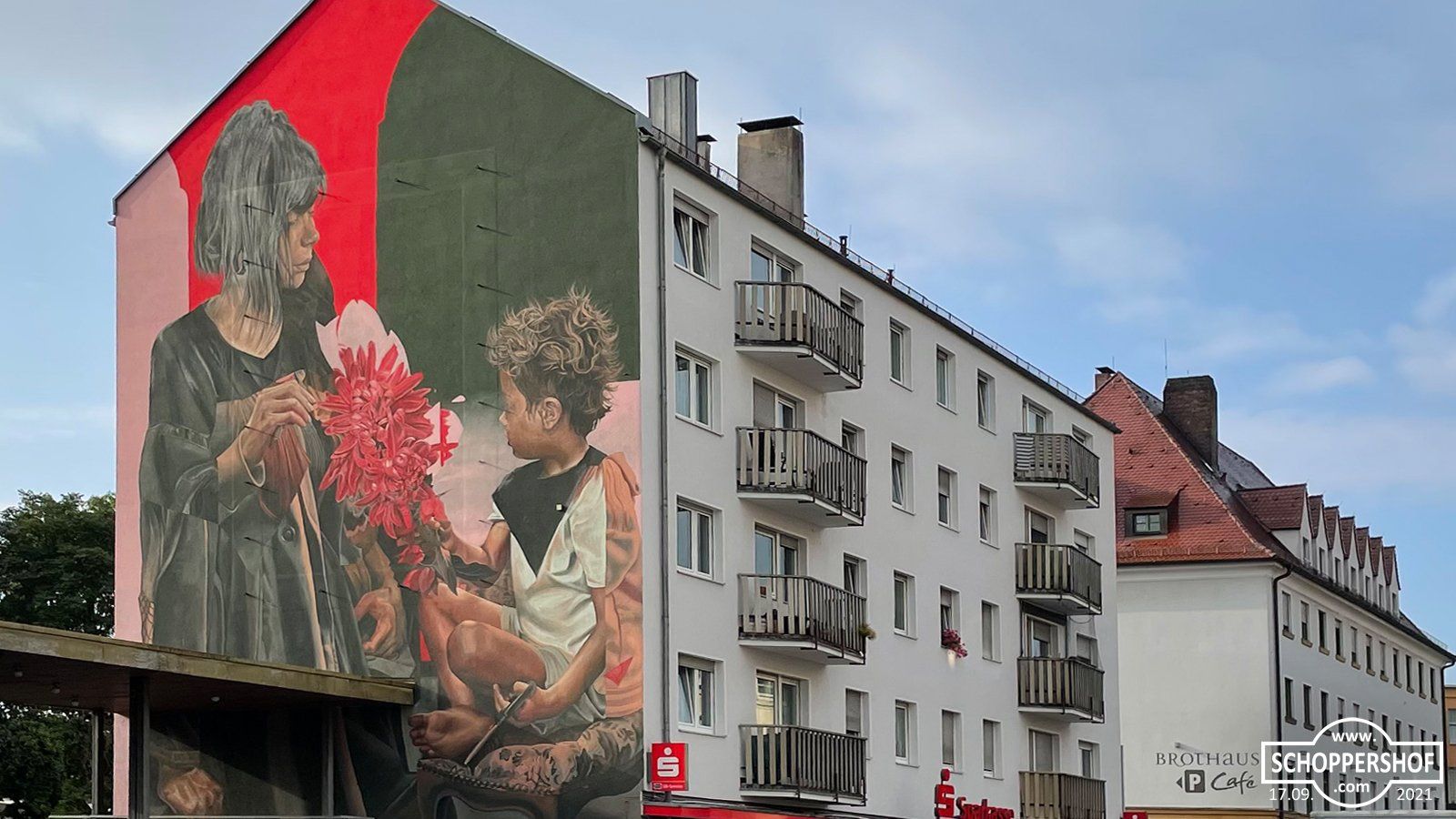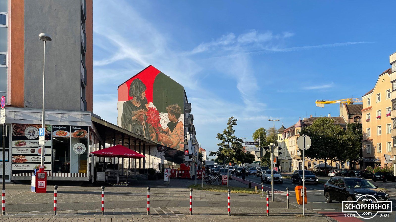 Zum 200. Jubiläum der Sparkasse Nürnberg entstand im September 2021 durch das niederländische Künstlerduo »TelmoMiel« ein ganz besonderes Wandgemälde am Gebäude der Stadtsparkasse in der Äußeren Bayreuther Straße im Stadtteil Schoppershof.