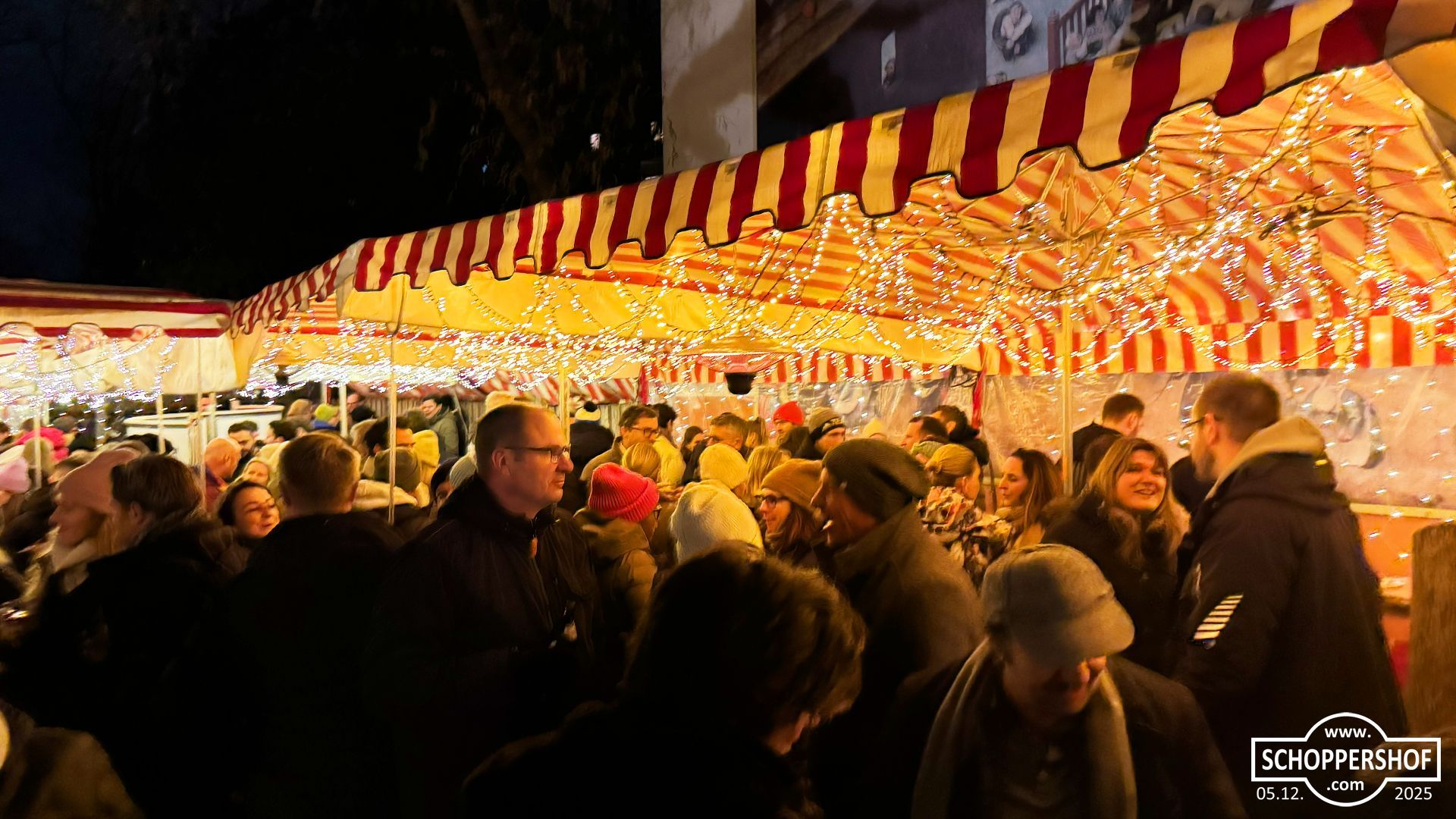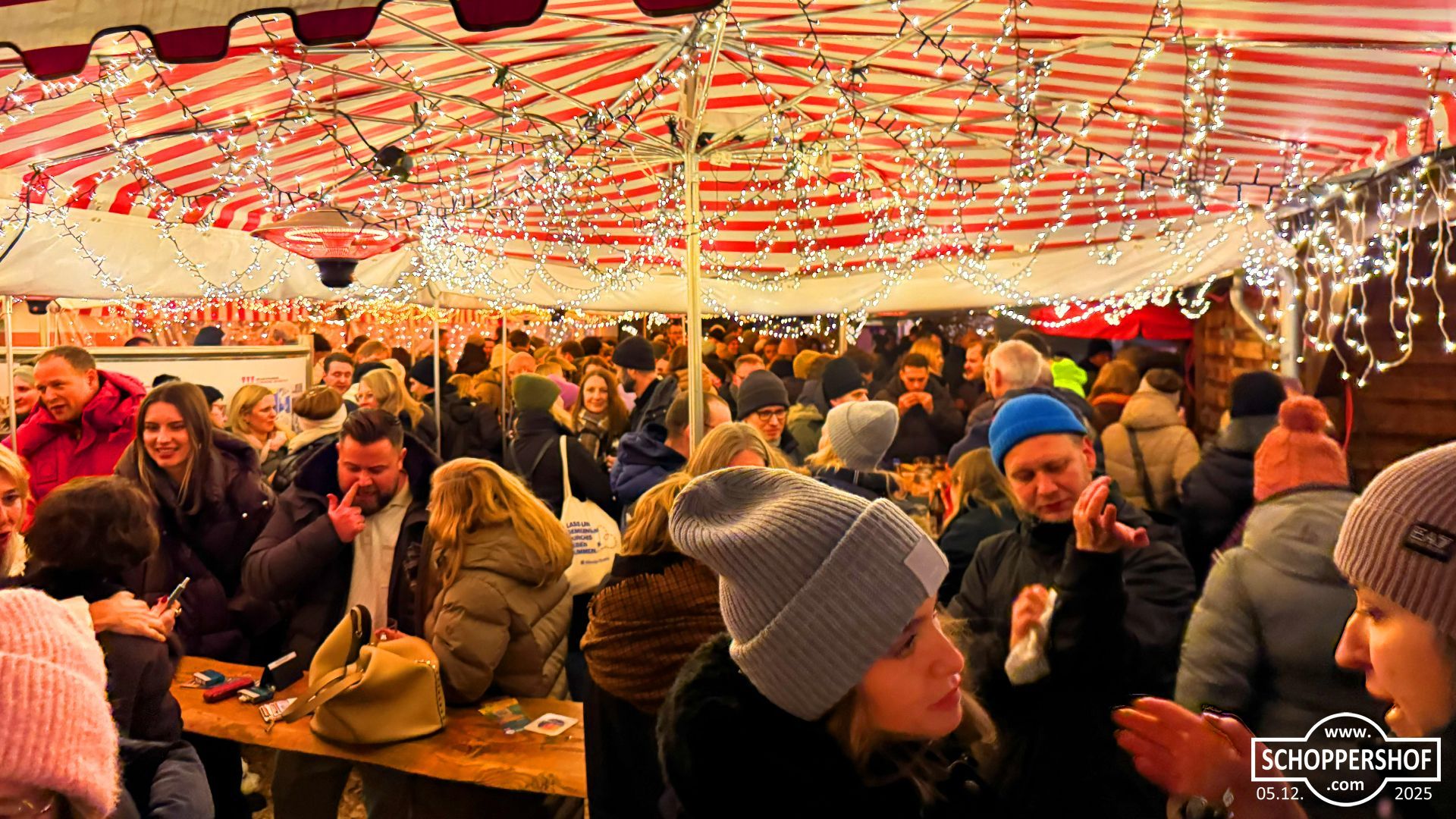 Vom selbstgemachten fränkischen Glühwein rot oder weiß bis zur dezent in Packpapier versteckten Flasche Glüh-Gin gibts hier eine große Auswahl an leckeren heißen Getränken. Nicht zu vergessen die herzhaften Schmankerln wie zum Beispiel das Bratwust-"Leberkäs"-Weckla.