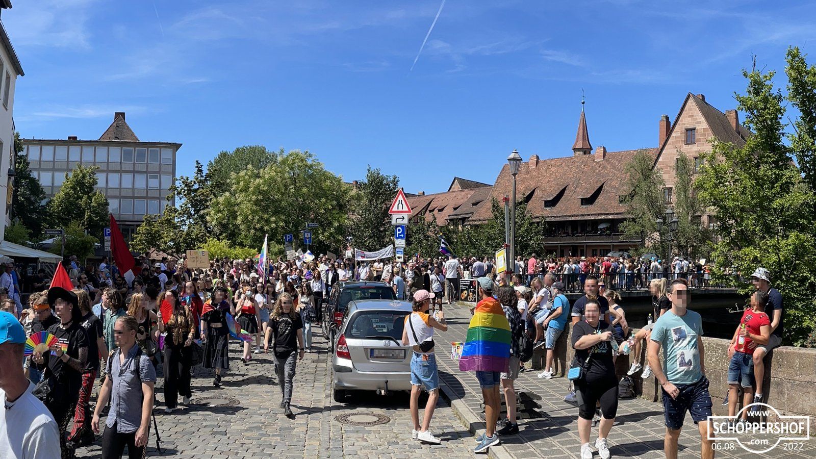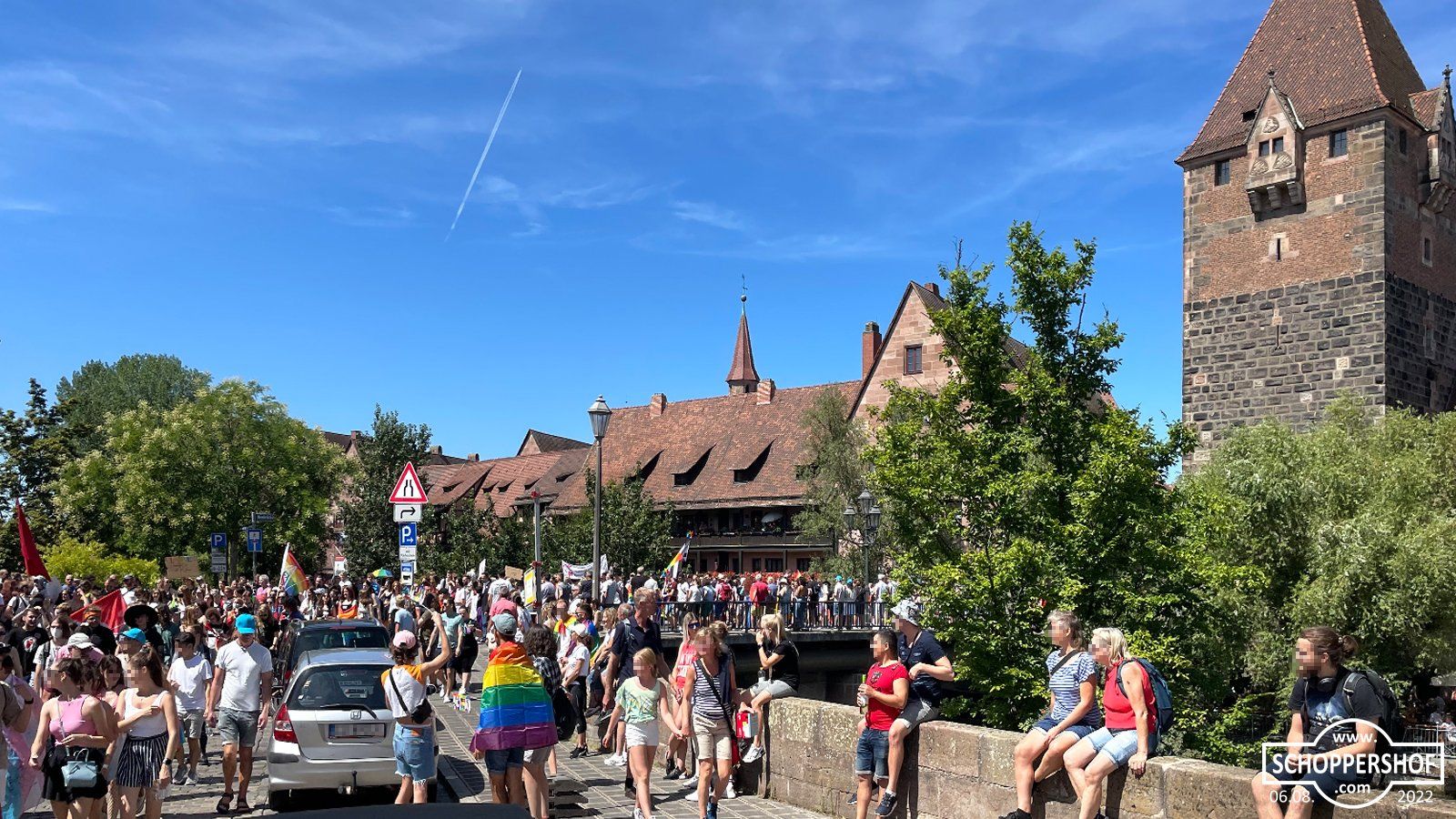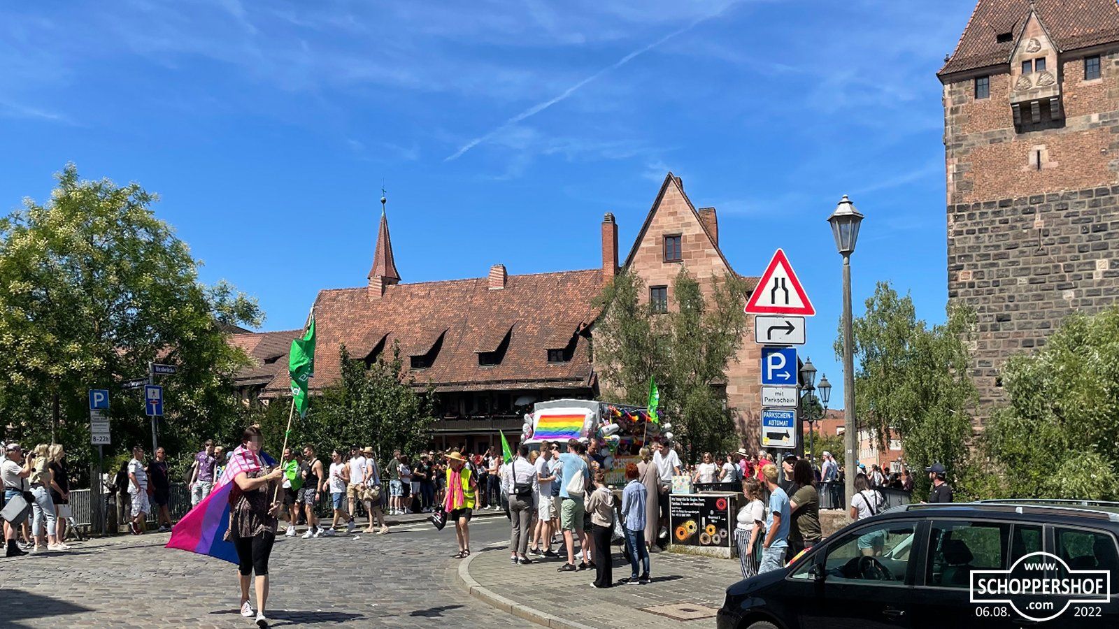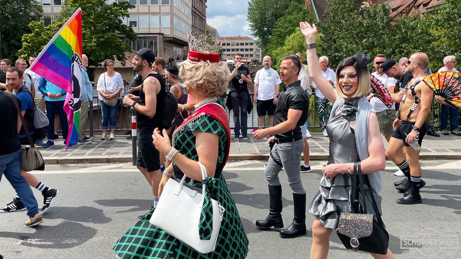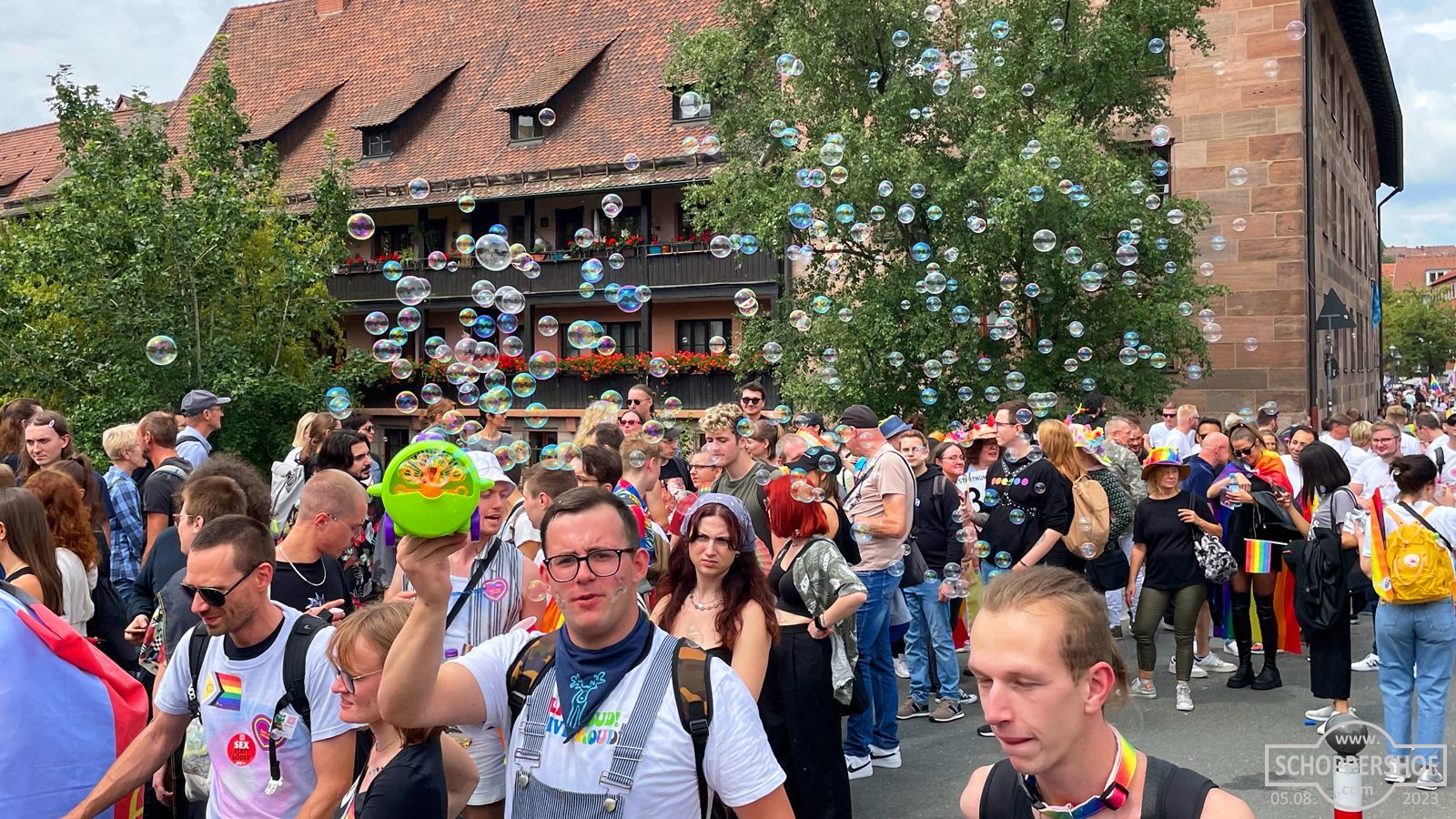 Höhepunkt der zweiwöchigen Pride Weeks war die Demonstration sowie das musikalische und politische Bühnenprogramm auf dem Kornmarkt in Nürnberg, an dem etwa 11.000 Menschen feierten.
