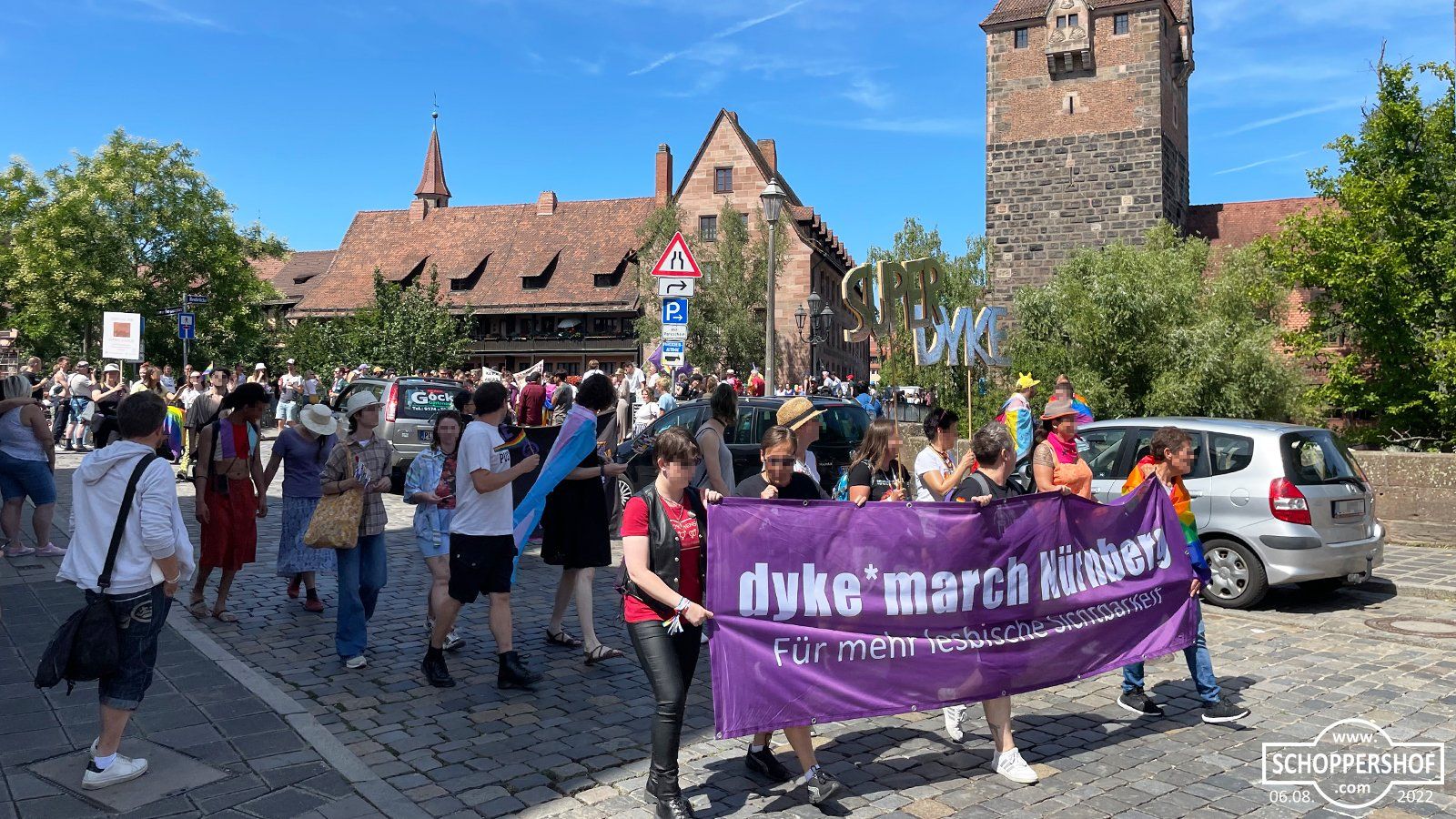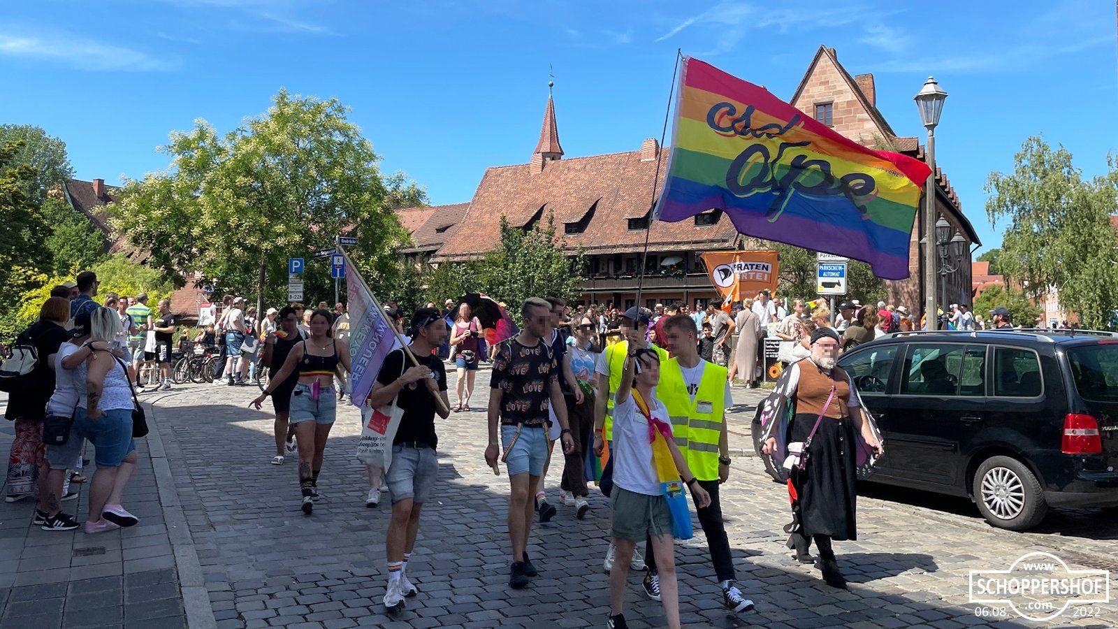 Der CSD Nürnberg 2022 stand unter dem Motto »Sichtbarkeit schafft Sicherheit« und richtete sich laut der Organisatoren des CSD nicht nur nach außen an die Gesellschaft und die Politik, sondern auch nach innen an die queere Community selbst - es soll den Zusammenhalt der Community in all ihrer Vielfalt verstärken und fördern.