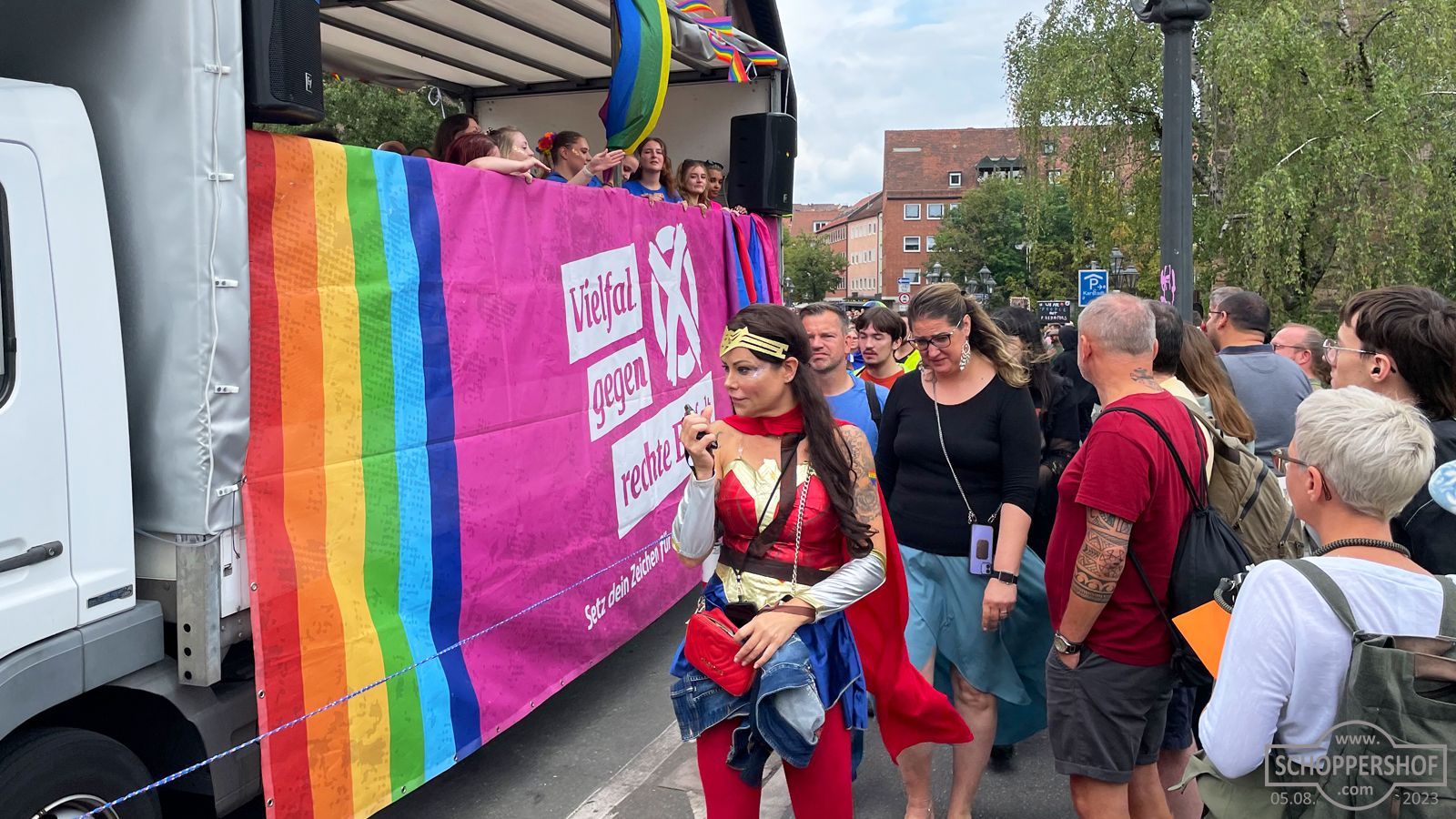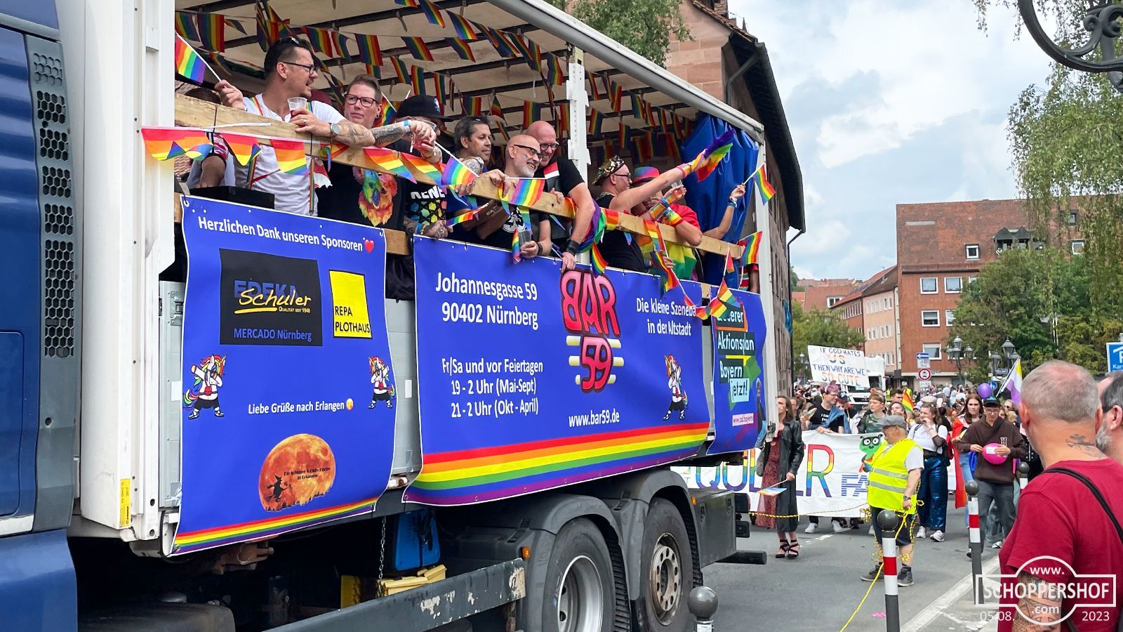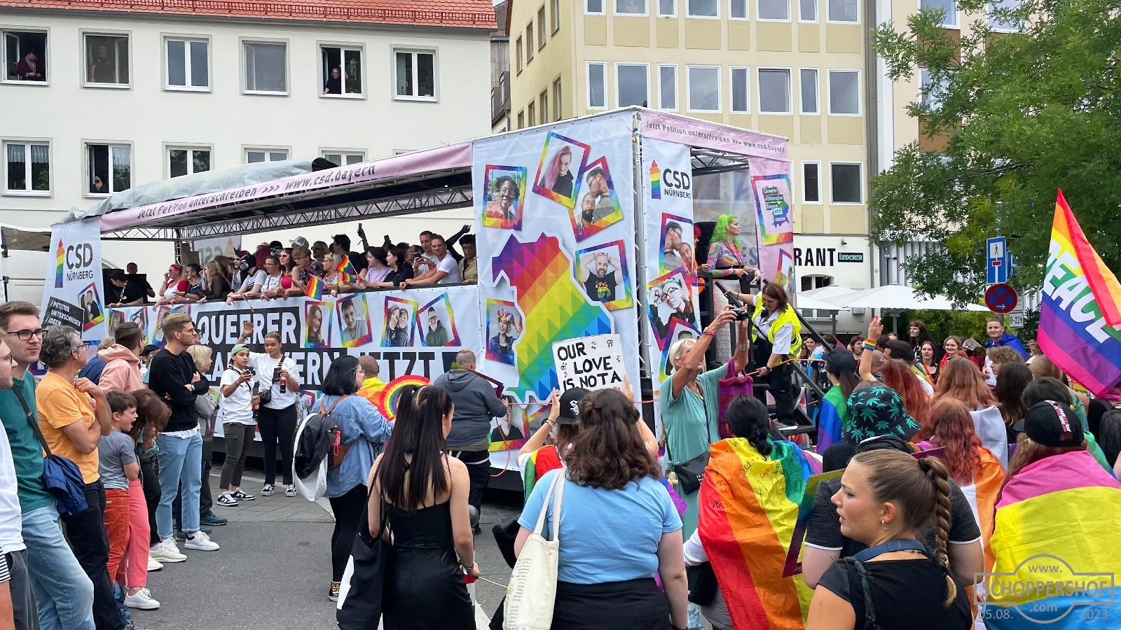 Der CSD Nürnberg 2023 stand unter dem Motto »Queerer Aktionsplan Bayern jetzt!«. Die Organisatoren des CSD fordert einen queeren Aktionsplan für Bayern und wollen per Petition Druck auf die Politik ausüben. Im Vorfeld der Parade durch die Nürnberger Innenstadt, fanden in den zwei PrideWeeks über 80 kulturelle und politische Einzelevents statt. Höhepunkt der Feierlichkeiten war ein buntes Bühnenprogramm auf dem Kornmarkt.