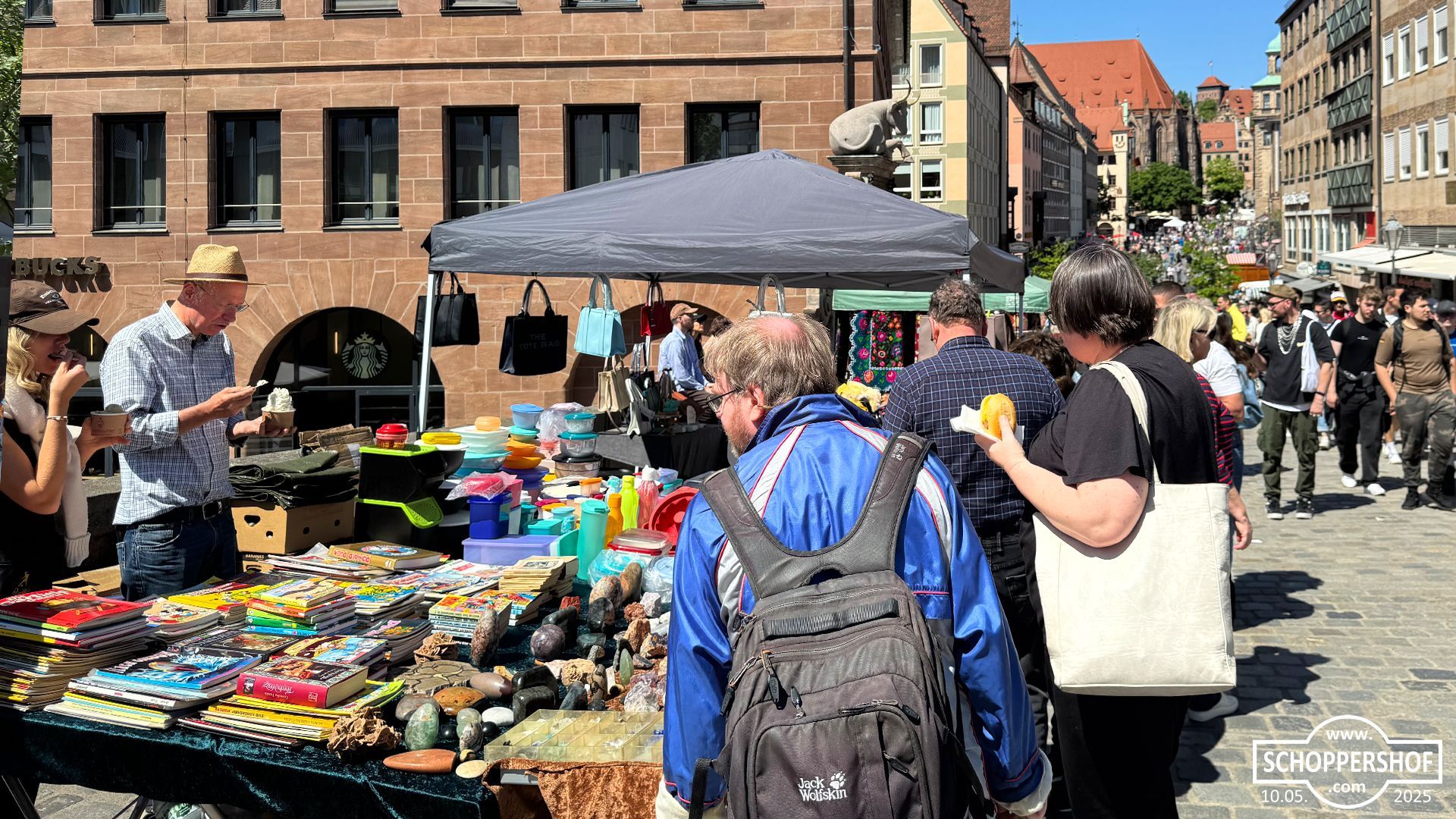 Jährlich Anfang Mai verwandelt sich die Nürnberger Innenstadt an zwei Tagen in ein Eldorado für Sammlerinnen und Sammler: Der Trempelmarkt zählt mit rund 600 Ständen zu den größten Innenstadtflohmärkten Deutschlands.