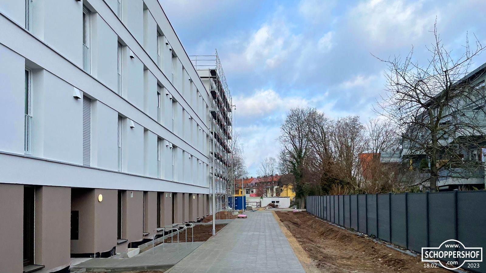 An der Äußeren Bayreuther Straße unmittelbar vor der Wohnanlage entstehen bis 2025 weitere Wohn- und Geschäftshäuser. Das kleine einzeln stehende Wohnhaus Äußere Bayreuther Straße 89 wird wohl weiterhin stehenbleiben.