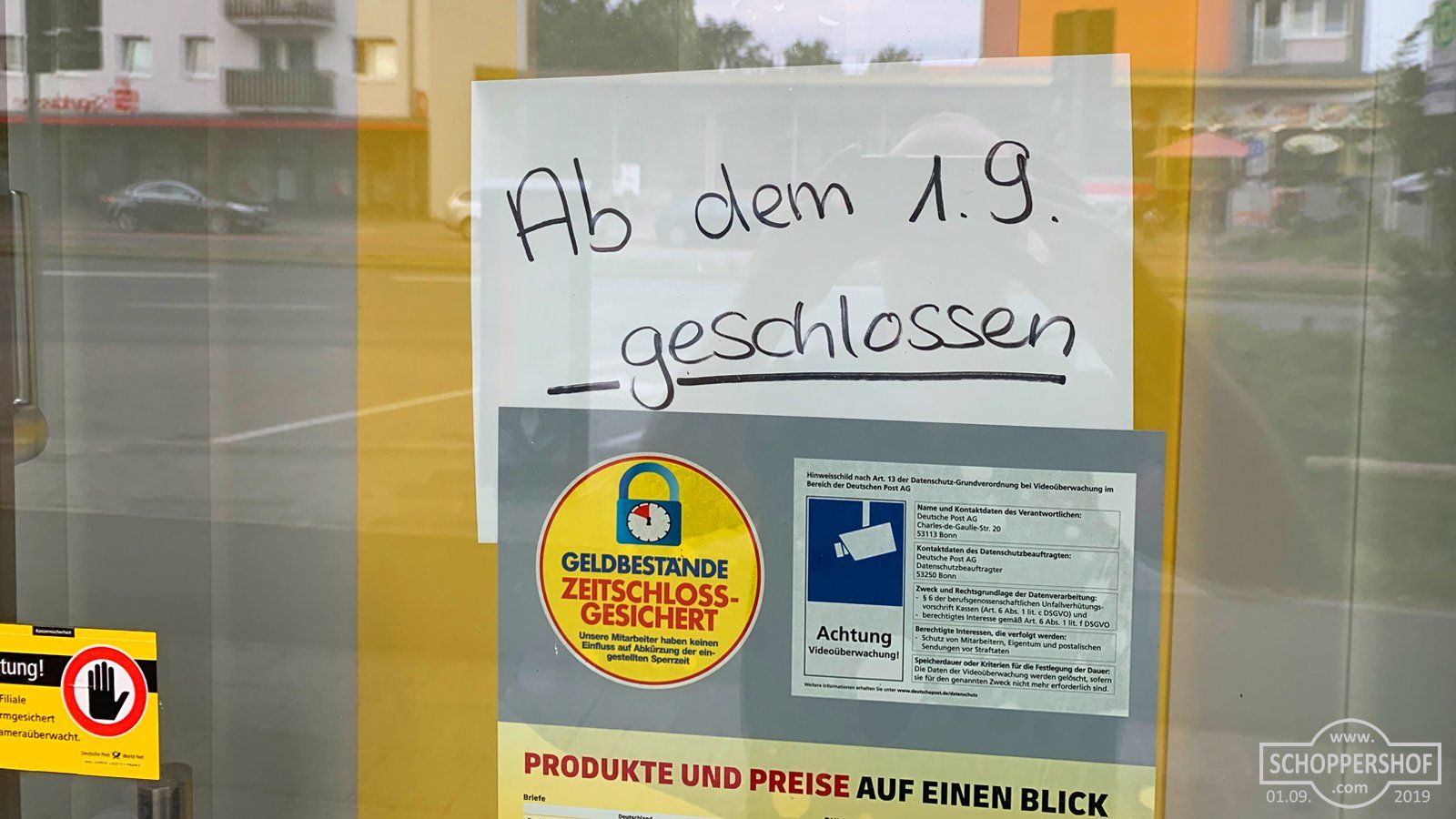 Das große Filial-Sterben geht weiter: Nach knapp zehn Jahren Geschäftsbetrieb schloß am 01. September 2019 auch die Postfiliale alias »Romeo´s Schreibwaren« in der Äußere Bayreuther Straße 105.