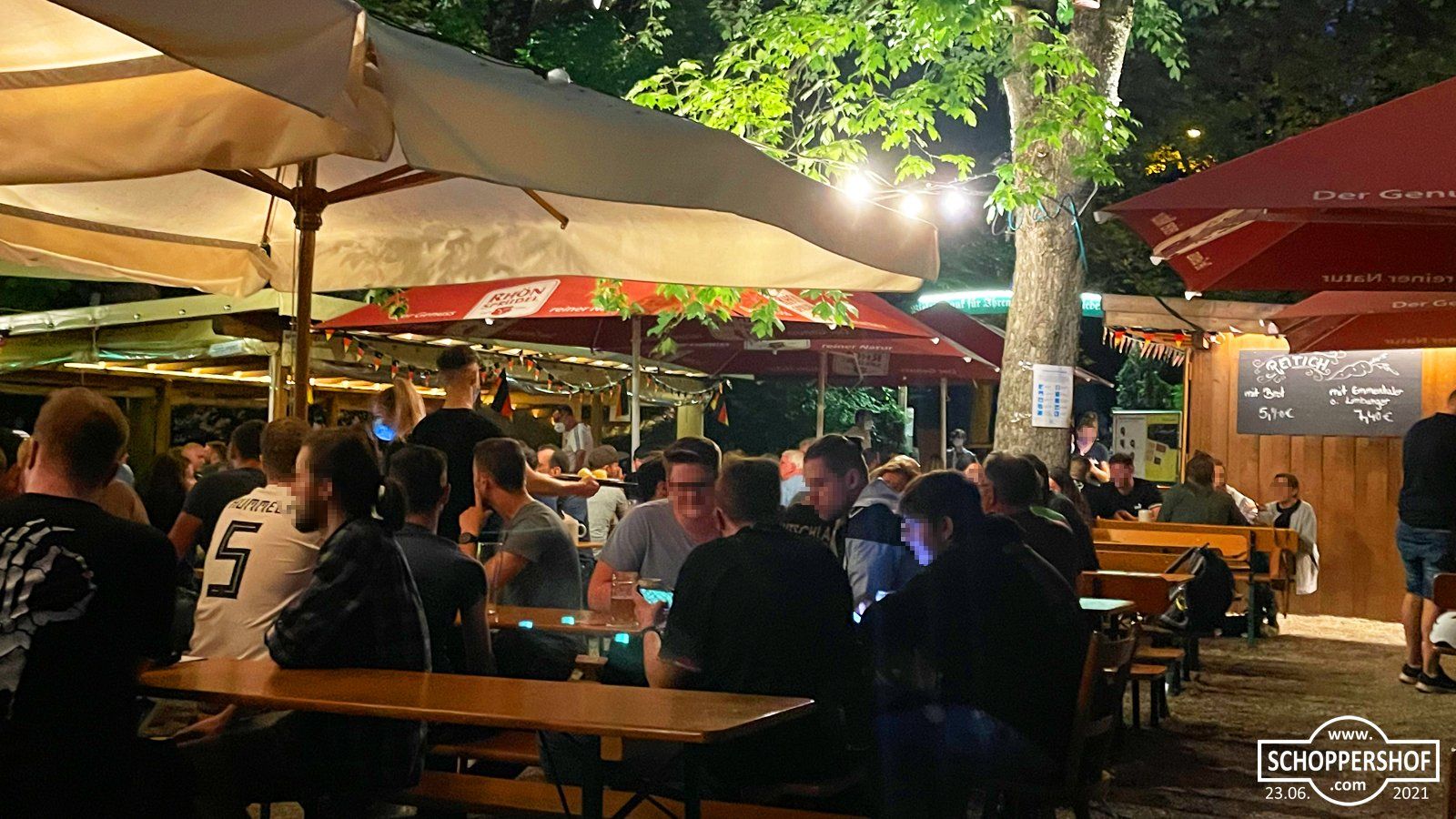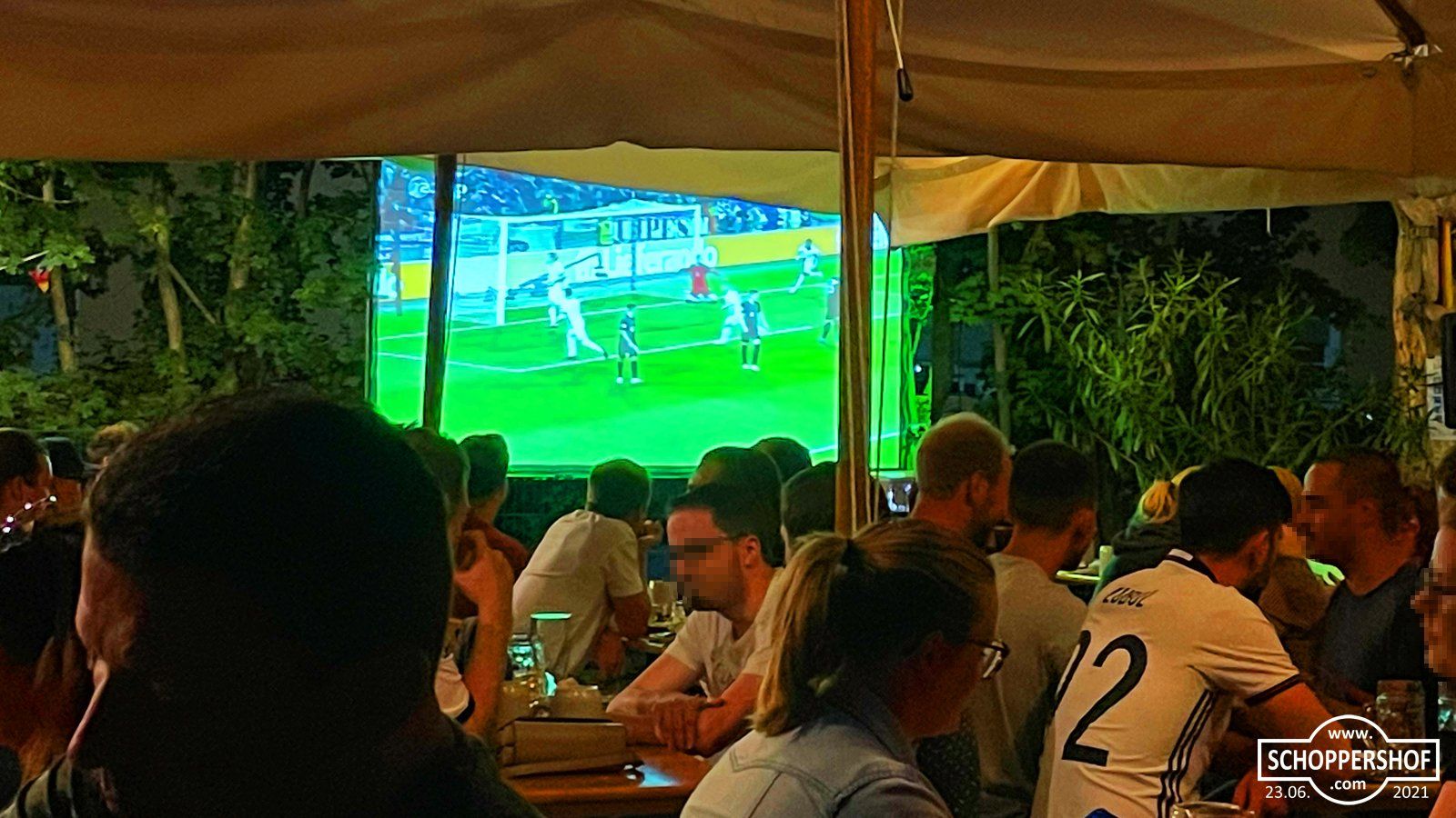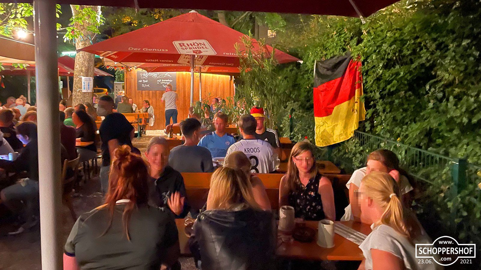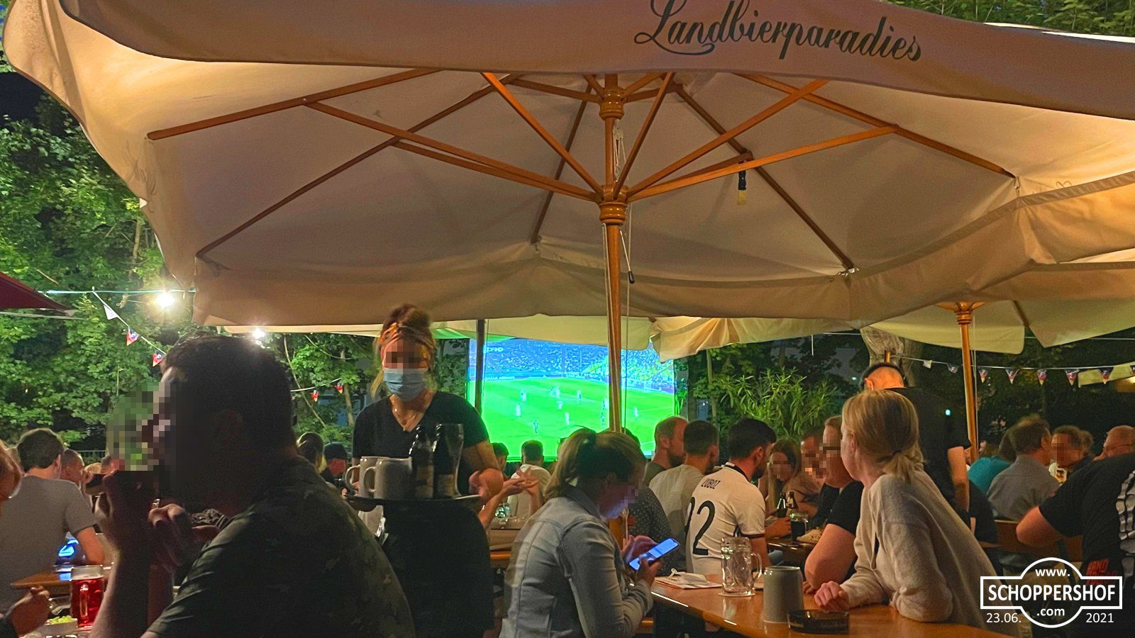 Wir verfolgten das Spiel bei begeisterter Atmosphäre im Landbierparadies Nordost in der Leipziger Straße. Der Biergarten war gut besucht und die Gäste könnten bei warmen Sommertemperaturen und einen frisch Gezapften das Spiel auf der Großbildleinwand verfolgen.