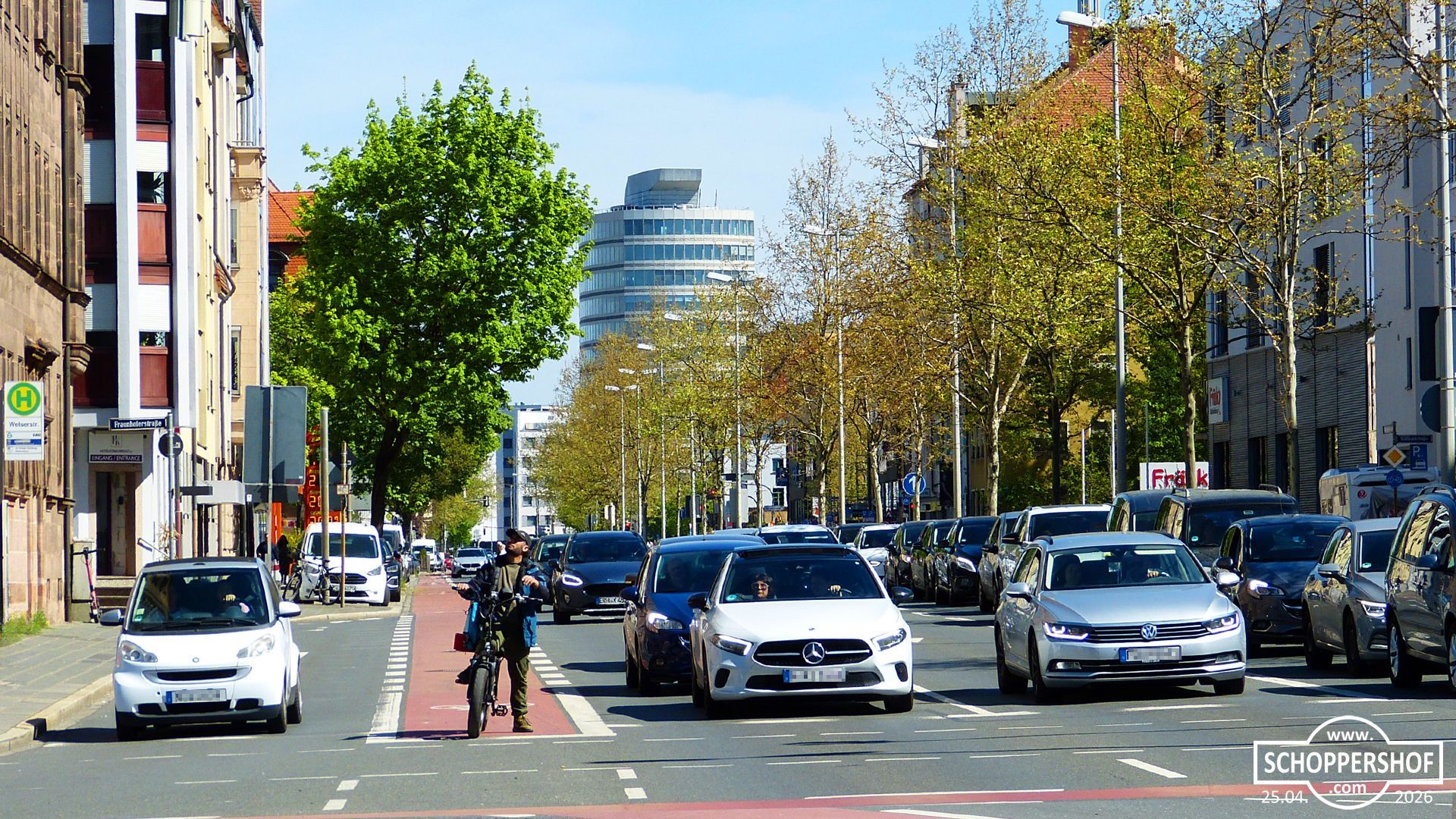 Zahlreiche Bäume und Grünflächen lockern das Stadtbild auf und schaffen kleine Ruheinseln im urbanen Raum. Gleichzeitig prägen stark befahrene Straßen die Atmosphäre. Diese Mischung aus Ruhe und Dynamik macht Schoppershof visuell spannend und bietet zahlreiche Motive für eindrucksvolle Straßenszenen, die wir im »Zoom« festgehalten haben.