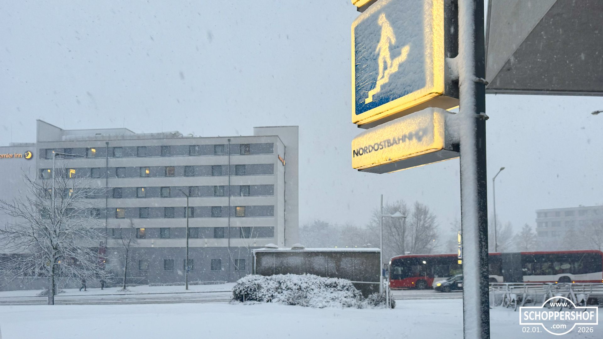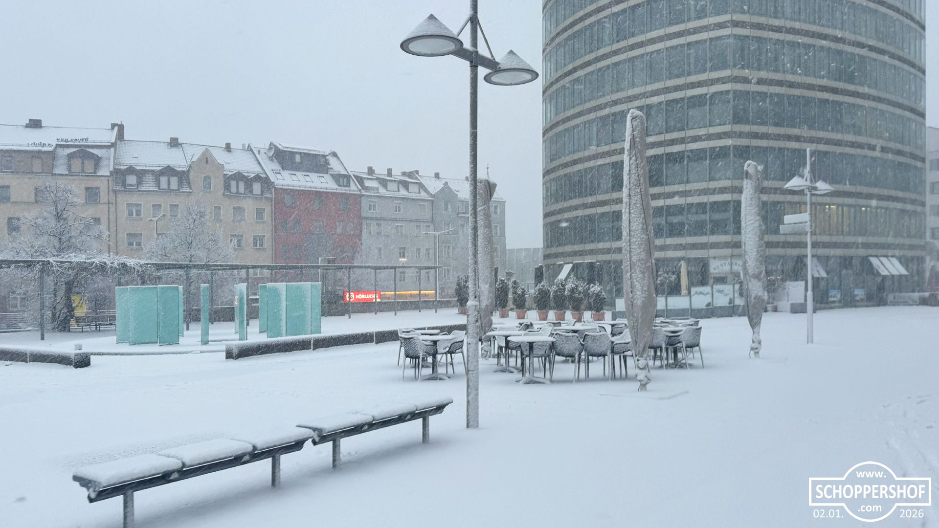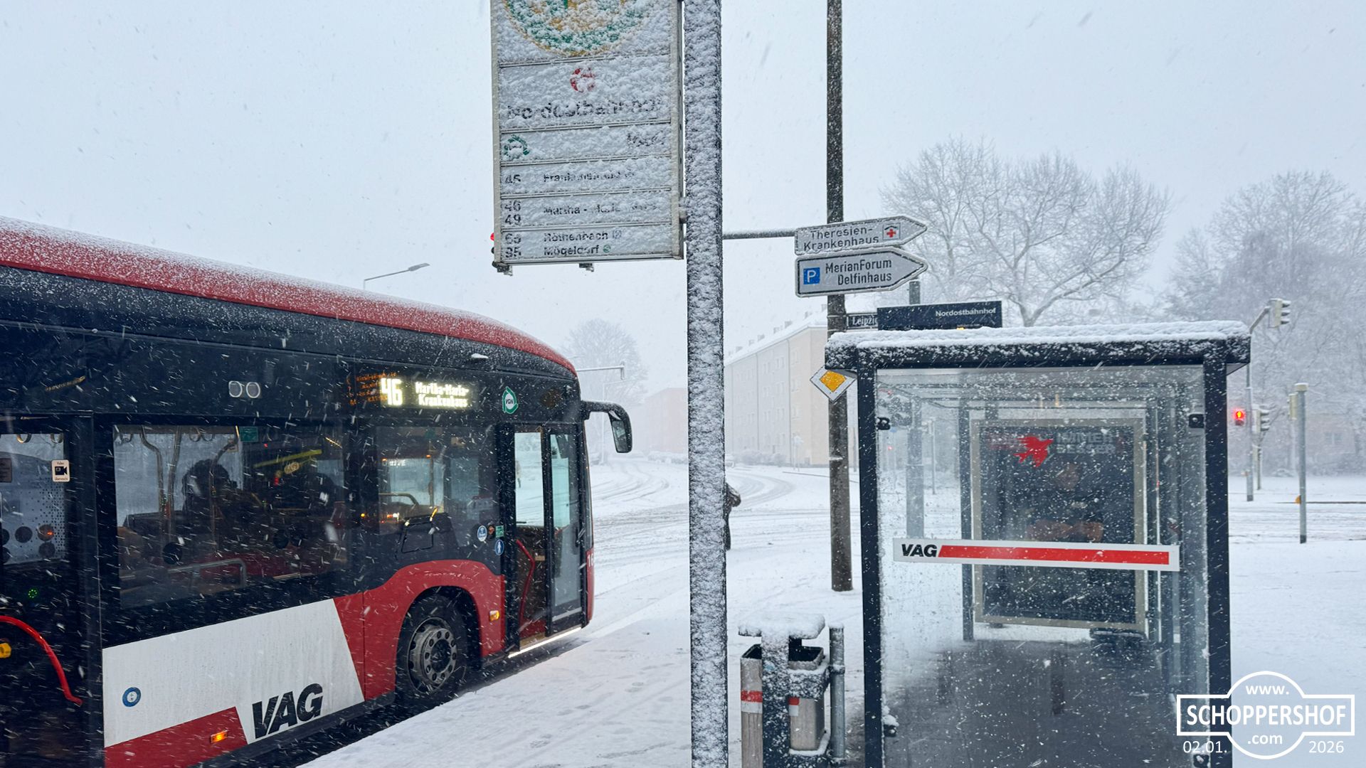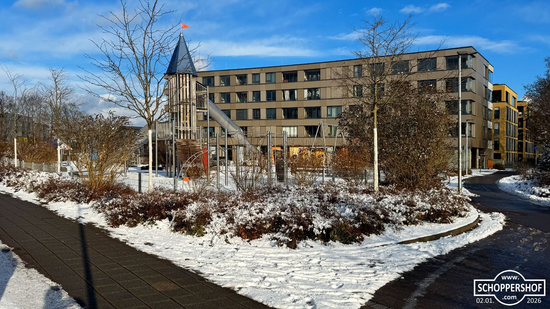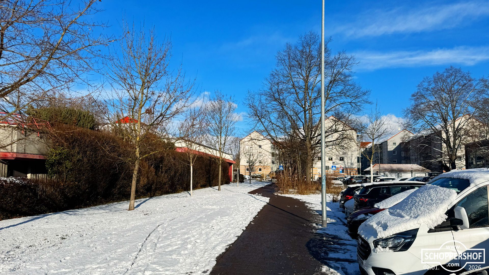 Schoppershof ist am Morgen unter einer zarten Schneedecke erwacht, ewige Schneeflocken fielen langsam vom Himmel und es war düster und grau. Mit voller Power räumte der Winterdienst die Straßen im Stadtteil.