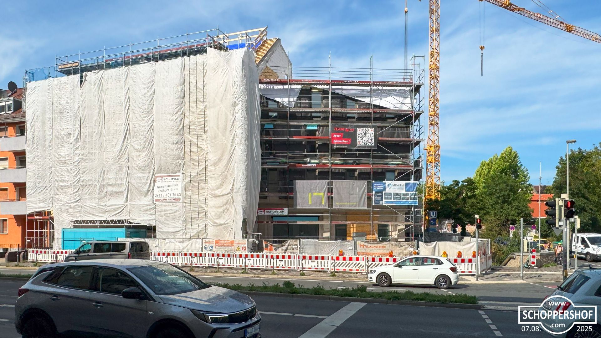 Wie wir dem Werbeplakat am Baugerüst des Gebäudes entnehmen können, eröffnet künftig die Biosupermarktkette »Denns BioMarkt« in der Gewerbeeinheit Welserstraße 70 ein Ladengeschäft.