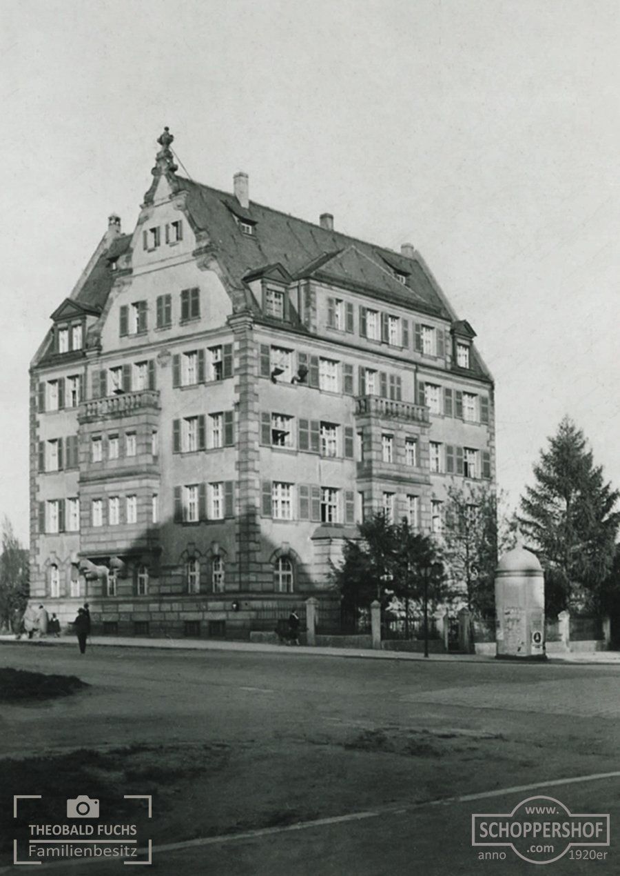 Das Wohnhaus wurde vermutlich ebenfalls Anfang des 20. Jahrhunderts an der Welserstraße/Ecke Bismarckstraße erbaut und besticht durch seine prachtvolle Fassade.