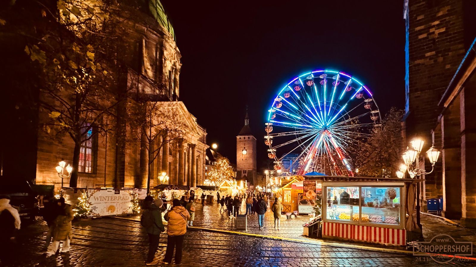 Neben dem Riesenrad erwarten die Besucherinnen und Besucher verschiedene Verkaufsbuden mit Glühwein, Eierpunsch, Lebkuchen und vielem mehr. Eine gemütliche Hütte lädt auf zwei Etagen zum Verweilen und Aufwärmen ein, ein Kinderkarussell und der Spiegelplalast am Weißen Turm sorgt für strahlende Kinderaugen.