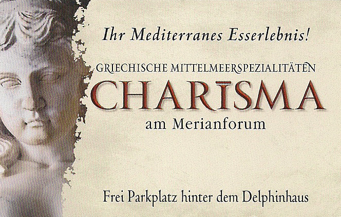 Zum Jahreswechsel von 2012 auf 2013 wurde aus dem ehemaligen griechischen Restaurant »El Greco« das »Charisma« - griechische Mittelmeerspezialitäten im Merian Forum.