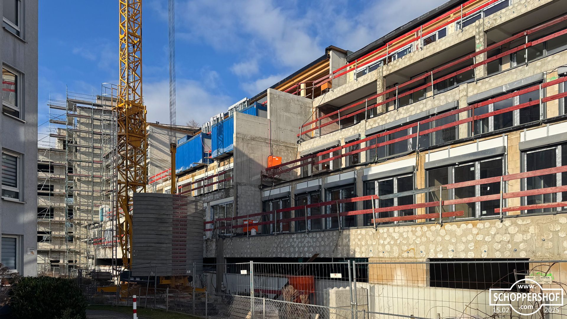 Die beiden Gebäude der Wohnanlage Merianstraße 32 und 32a wurden in den 1990er Jahren für die Deutsche Telekom errichtet und dienten vor dem Umbau als Bürogebäude.