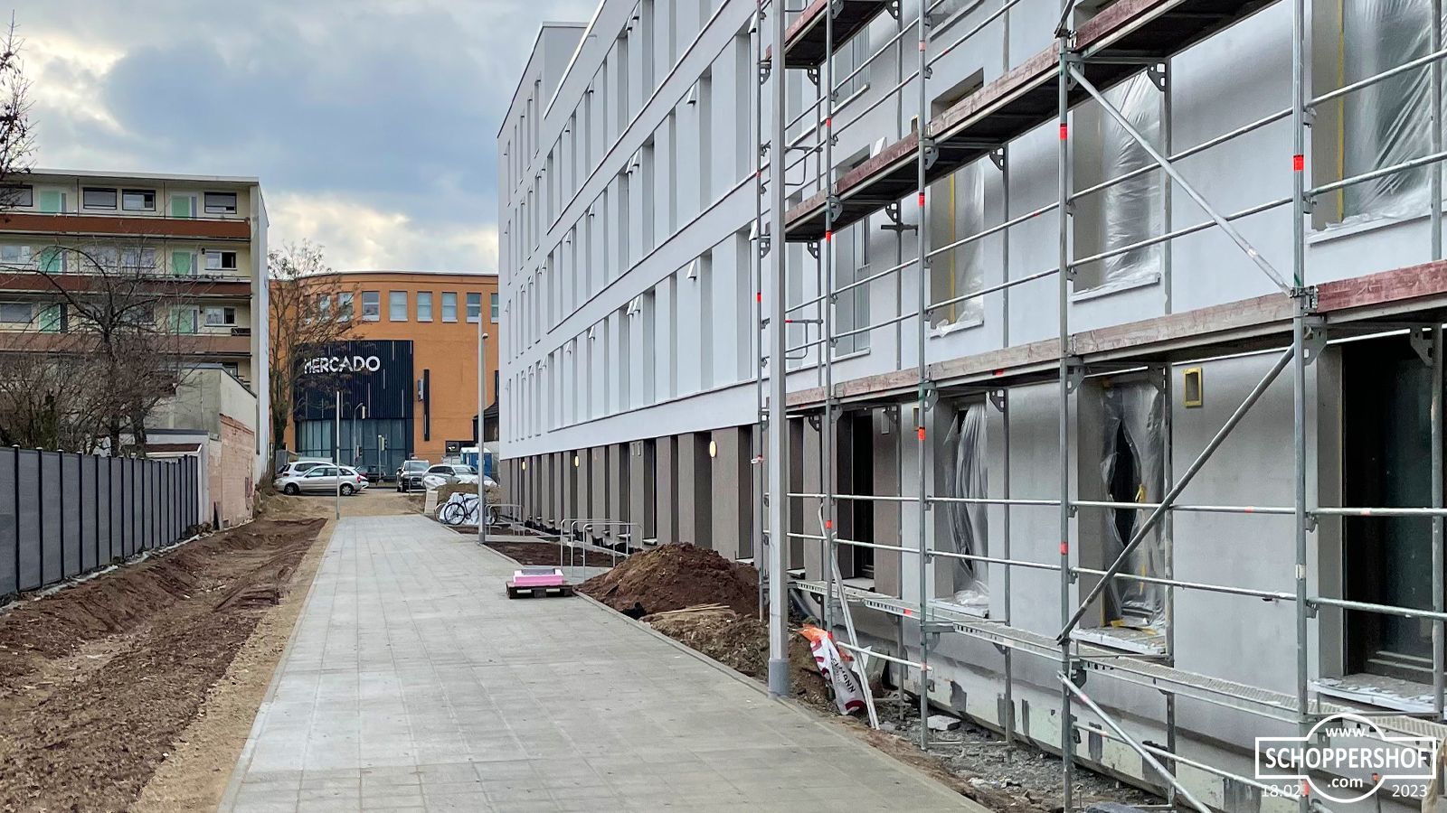 Zwischen der Äußeren Bayreuther Straße und der Merianstraße, direkt gegenüber des Einkaufszentrums »Mercado« entstand in den Jahren 2020 bis 2023 durch die Grasruck Projekt GmbH & Co. KG Neumarkt eine Wohnanlage mit 102 Mietwohnungen.