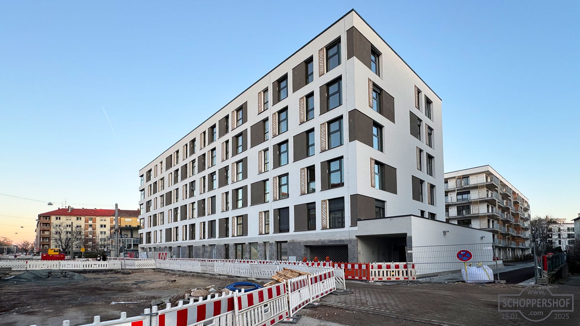 Der Gebäudekomplex auf dem rund 4.400 m² großen Grundstück umfaßt ca. 134 Wohnungen mit einer Fläche zwischen 34 und 112 m² mit Terrasse, Balkon oder Garten, drei Gewerbeeinheiten und eine Tiefgarage. Im nach Süden ausgerichteten Innenhof befinden sich Grünflächen mit kleineren Bäumen, Sitzgelegenheiten und ein Kinderspielplatz.